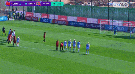上半场补时阶段,中国队禁区内造点,周欣怡主罚点球命中,中国队2-0领先挪威队。