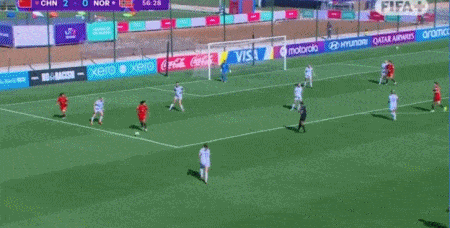 第57分钟,周欣怡门前把握机会再入一球,中国队3-0挪威队。